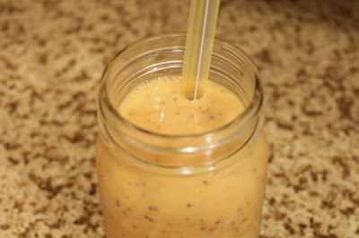 2. Add chia seeds, bananas, strawberries and ice cubes. Blend them thoroughly.