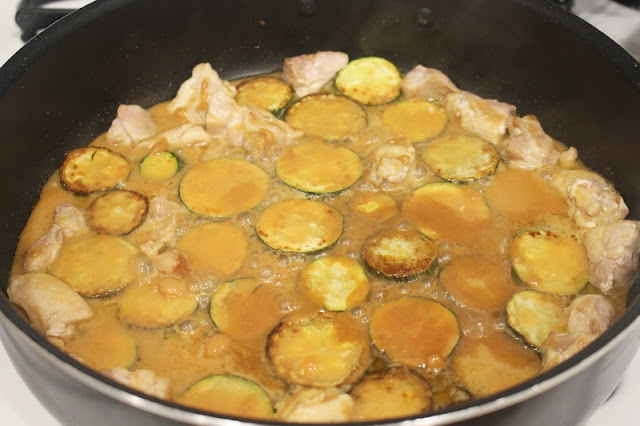 1. Heat oil in a large flying pan over high heat. Saute chicken and zucchini.