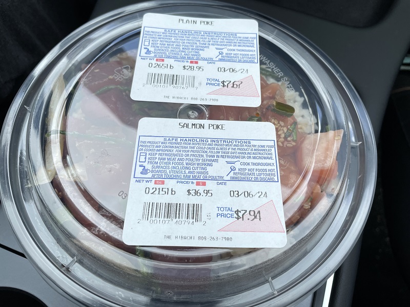 We purchased this poke bowl for $17.11 (Regular Rice Bowl $1.50 + Ginger Shoyu Salmon Poke $7.94 + Plain Ahi Poke $7.67)